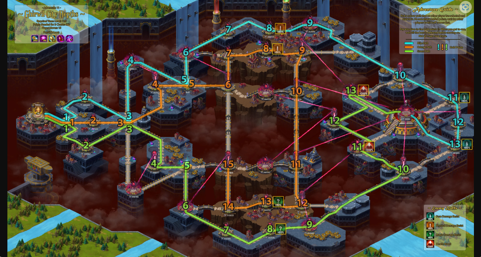 Conseil : Le premier joueur de l'aventure de faire le trajet du milieu pour dégager la voie pour les deux autres joueurs, le but étant de gagner tous les combats et les 4 coffres. Dans cette aventure, 1 combat perdu = 1 coffre perdu.